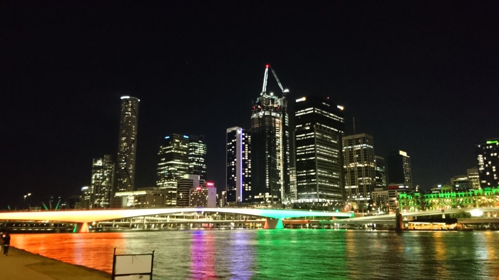 Nous arrivons à Brisbane en fin d’après-midi et, après un bref passage à notre hôtel, nous partons explorer la ville. Premier contact avec Brisbane : le Victoria Bridge illuminé, que nous traversons avant de flâner le long de la rivière pour rejoindre South Bank. Quelques minutes à peine nous auront suffit à tomber sous le charme de cette ville. Parmi les villes visitées tout au long de notre voyage, Brisbane est sans conteste ma favorite.