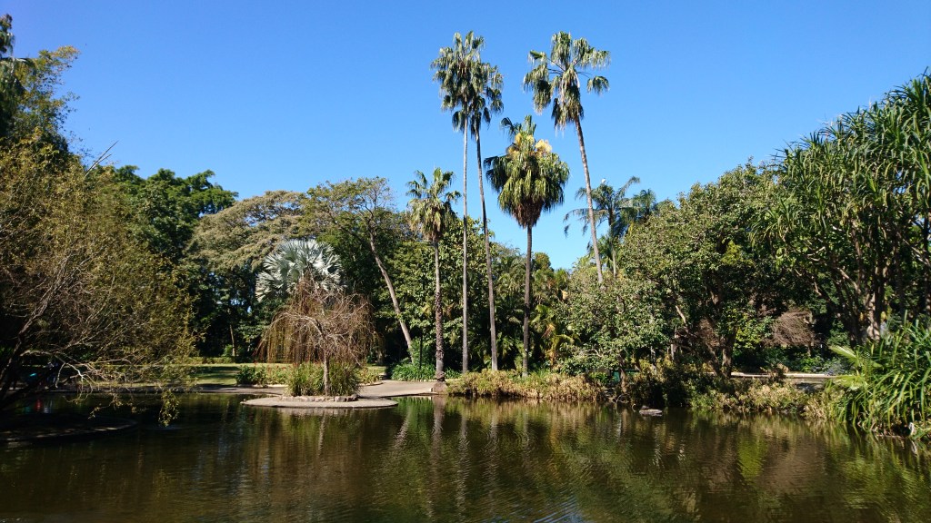 Nous descendons du ferry pour une promenade le long de la rivière dans le parc de Kangaroo Point. Ce quartier est réputé pour ses falaises surplombant la ville et ses vues panoramiques. Nous traversons ensuite un pont pour rejoindre le jardin botanique de Brisbane. Bien que plus petit que celui de Sydney, il est agréable de s’y promener. Entre les arbres majestueux, les fleurs colorées et le chant des oiseaux, on oublie rapidement que l’on est en plein centre-ville.