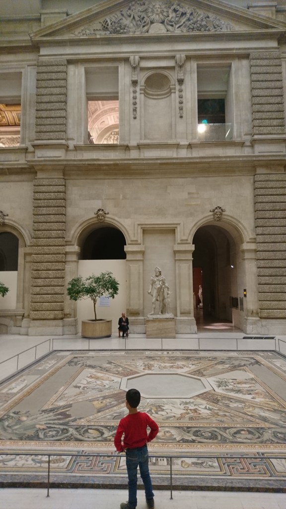 Je pensais que du haut de ses 6 ans, le gnome en aurait assez au bout de quelques heures passées à marcher dans les immenses ailes du Louvre. Mais non. Il ne voit pas le temps passer, et ce n’est qu’à 19h que je finis par réussir à l’entrainer vers la sortie.