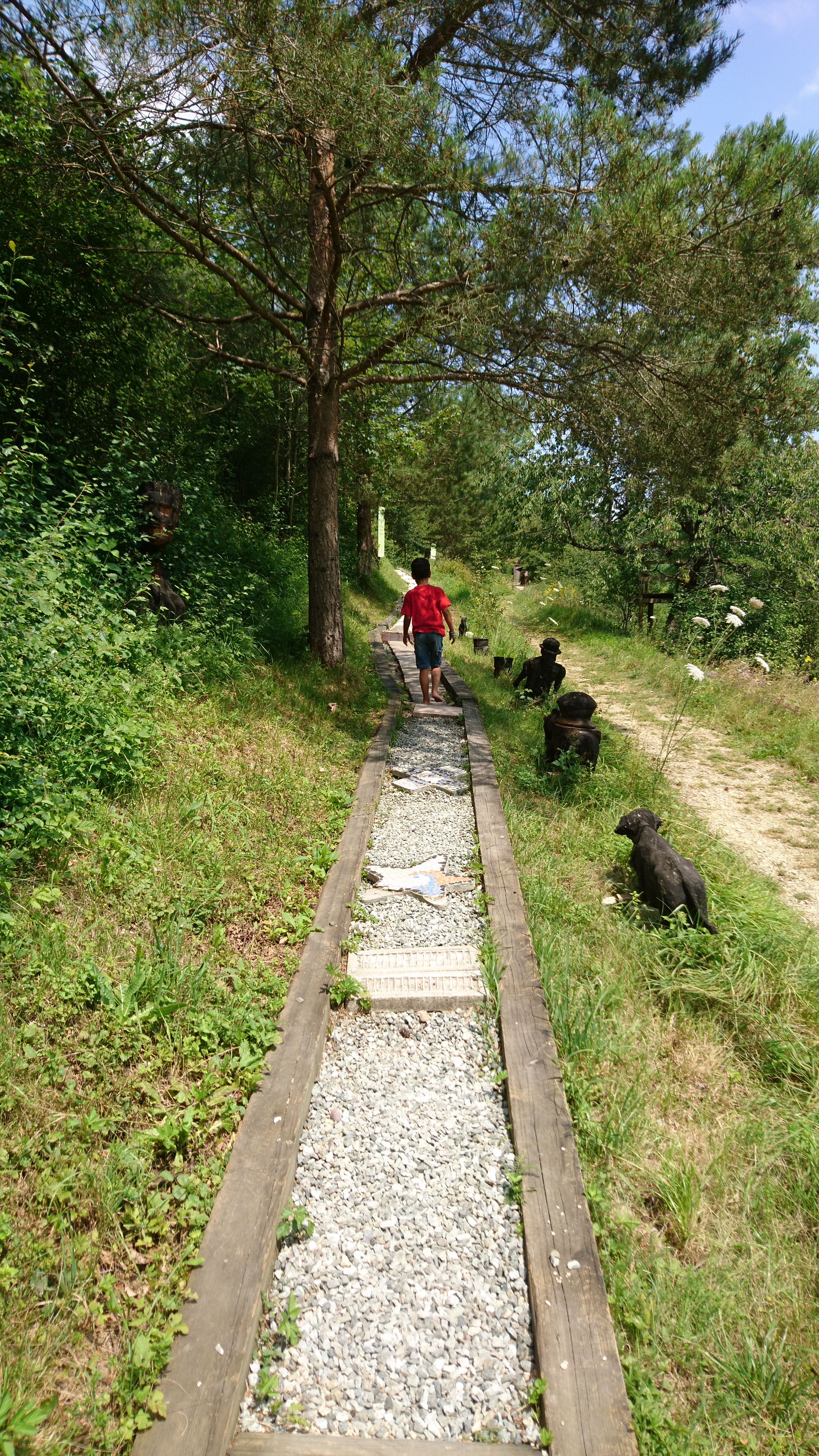 Après une pause pique-nique, départ pour le sentier pieds nus à Rebeuvelier, à 15 min de route. C’est l’occasion de redécouvrir des sensations. Le parcours nous emmène tour à tour sur un chemin de terre, à travers la prairie, dans le lit d’une rivière, ou encore sur des cailloux. Compter environ 30-40 min pour vraiment prendre le temps d’en profiter.
