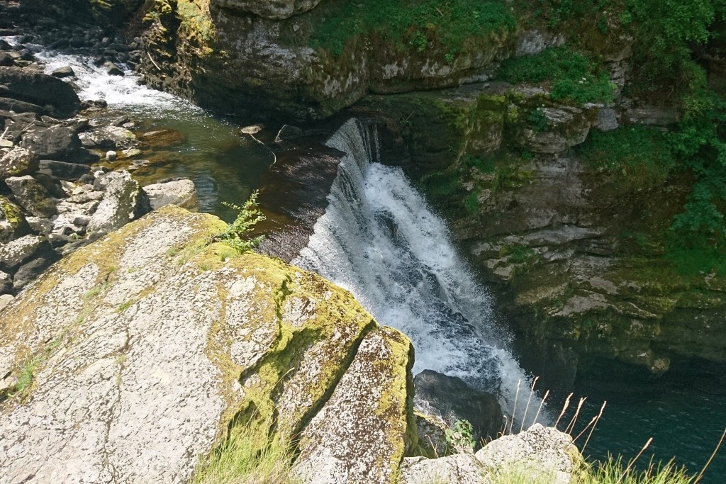 Prochaine étape : le Saut du Doubs. Partant des Brenets, le trajet en bateau dure une vingtaine de minutes, auxquelles se rajoutent 10 minutes de marche pour parvenir en haut de la cascade. Nous sommes surpris de découvrir qu’il y a cependant peu d’eau… Par contre, il y a beaucoup de monde. Nous repartons ensuite à pied pour le retour. La balade jusqu’aux Brenets prend environ 1h. La plus grande partie du trajet se fait sur une route goudronnée dans la forêt et n’a que peu d’intérêt. Pour rejoindre le débarcadère, il y a juste un petit passage délicat sur la fin, lorsque l’on quitte la route pour s’engager sur un sentier étroit, dans la forêt, à flanc de falaise. Attention avec les jeunes enfants.