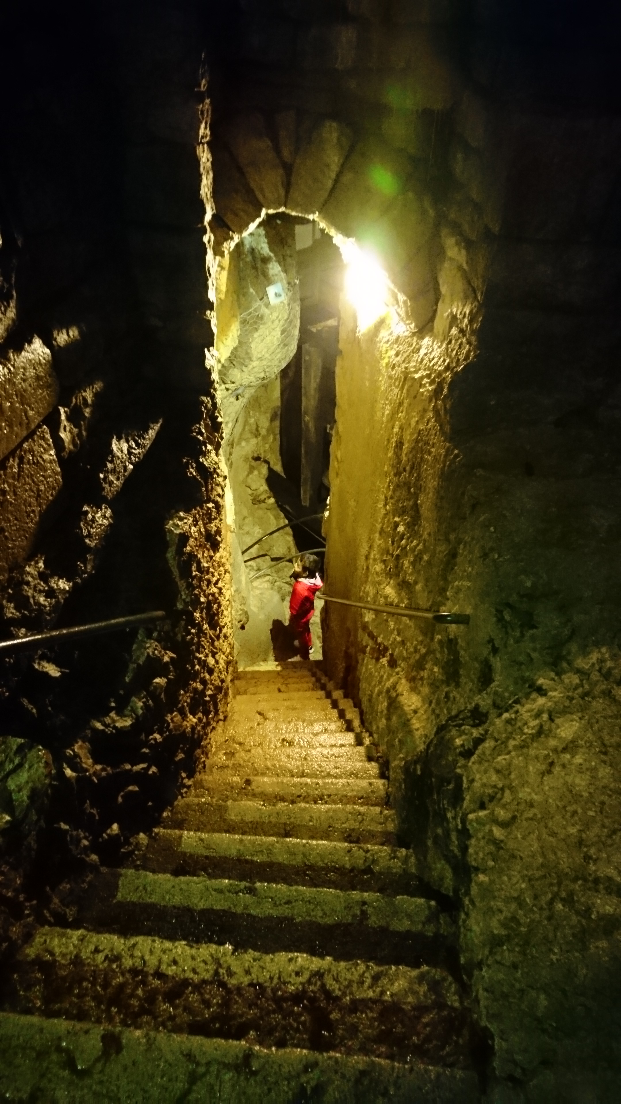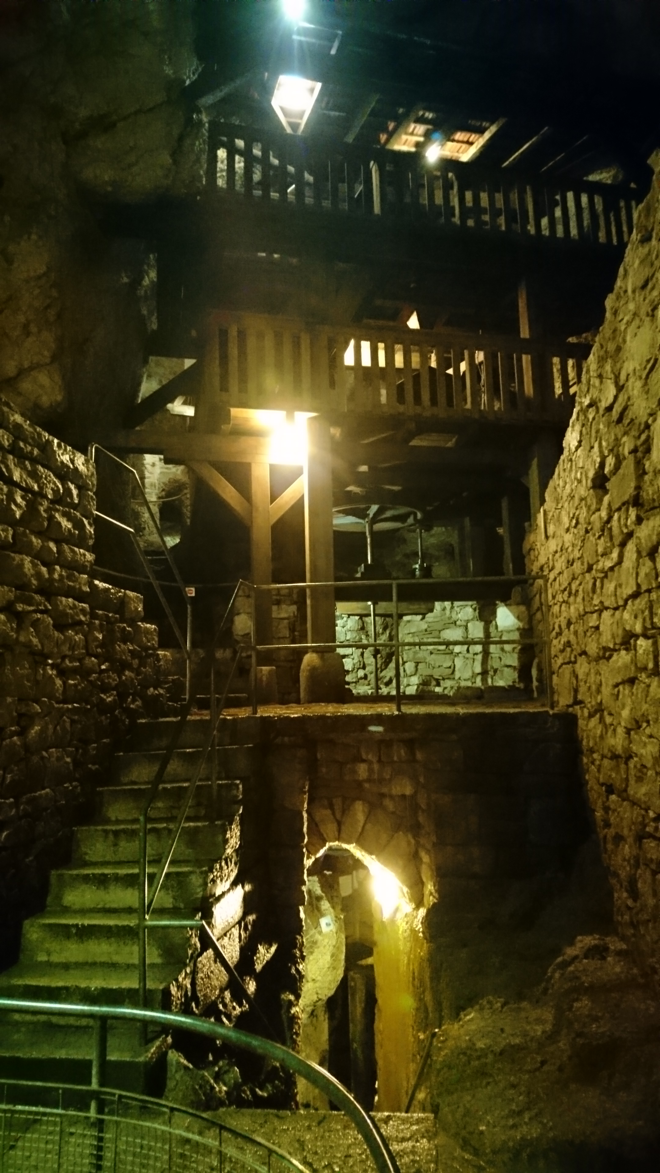 Nous partons ensuite à la découverte des Moulins souterrains du Col-des-Roches, au Locle. Les galeries descendant à une vingtaine de mètres de profondeur, il y fait bon frais. Durant 1h, le gnome s’émerveille devant ces moulins hors du commun tandis que l’audioguide nous raconte leur histoire.
