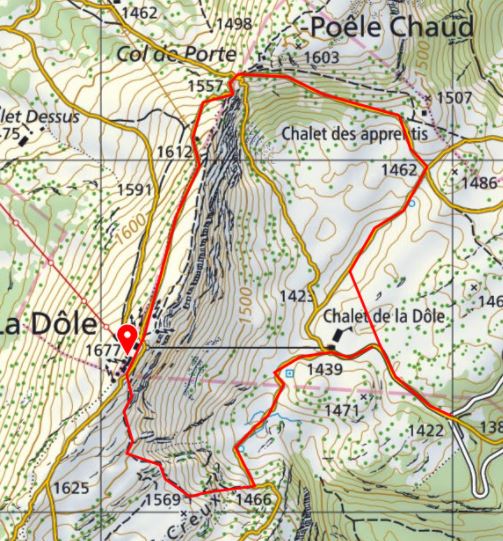 Depuis le Chalet de la Dôle, il est possible de faire une boucle. En montant par la droite, deux options s’offrent à vous : le plus direct monte en pente raide et fini dans un pierrier, le second fait un détour par le chalet des appentis et est plus facile.
