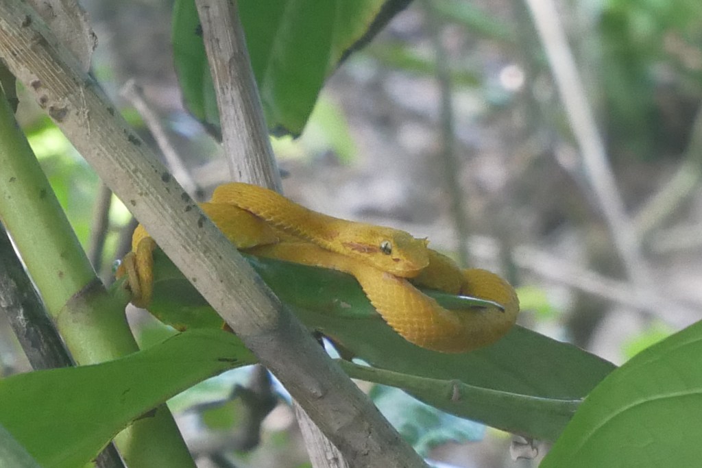 Pas besoin de guide, il suffit d’ouvrir les yeux et d’être attentif pour voir aisément singes hurleurs, capucins, paresseux, ratons laveurs, coatis, lézards, basilics, crabes,… Lors de notre dernière visite, nous avons même eu la chance de voir une vipère à cils. Je ne me suis pas lassée de m’y promener, chaque visite étant différente. Nous avons dû y aller 6 ou 7 fois, avec toujours le même émerveillement au bout du compte.