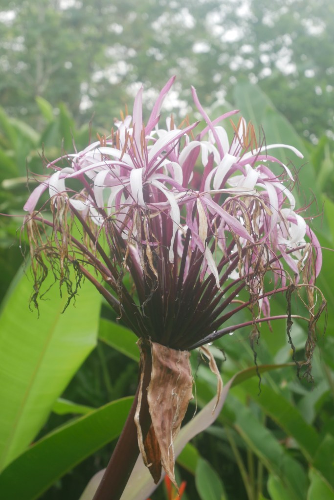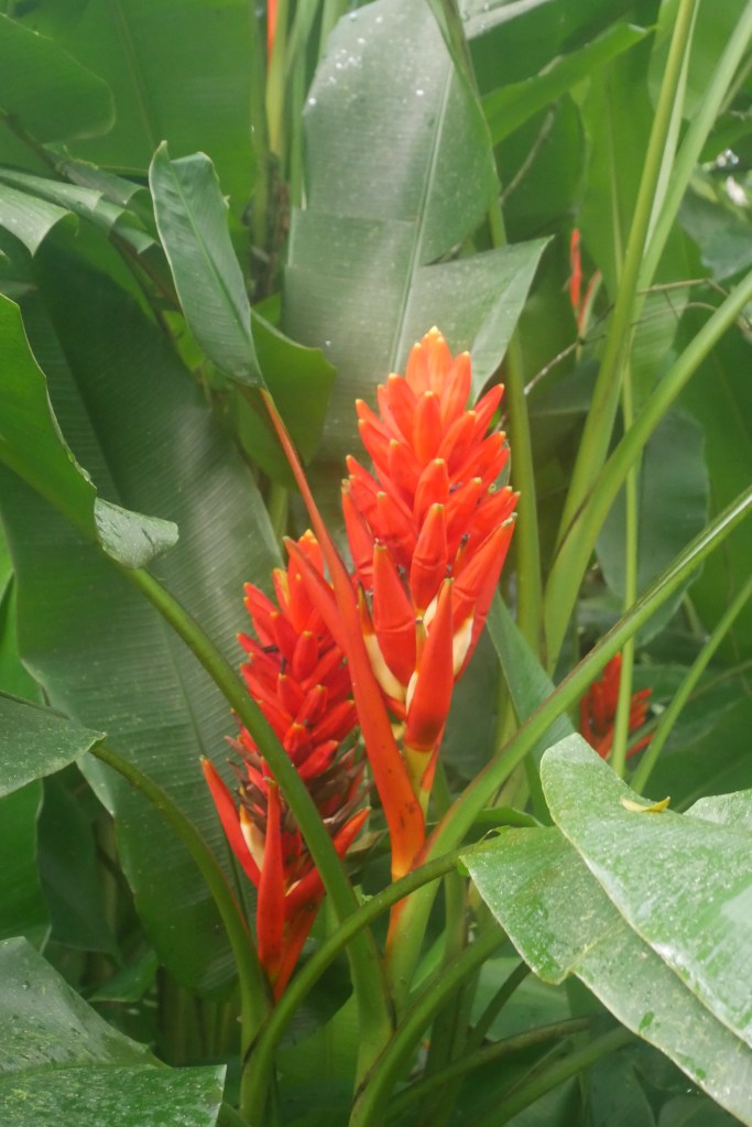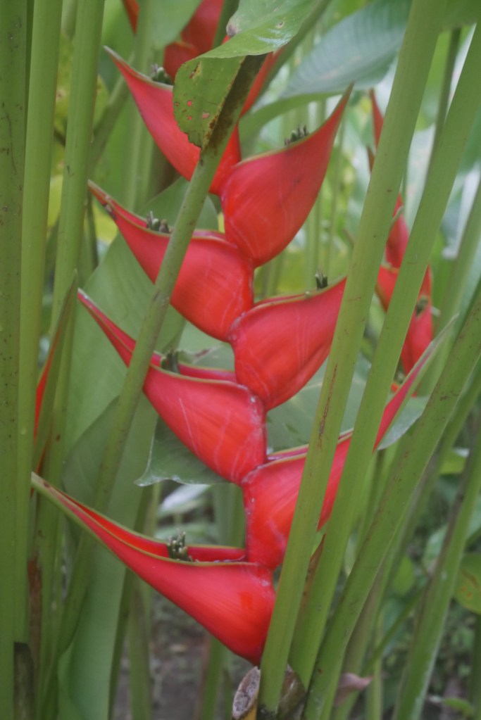 Arrivés à la réception, surprise : il n’y a plus de visite guidée du jardin car le couple à son origine n’est plus là… L’hôtel a été repris par Pierre, certes très sympathique et arrangeant, mais qui n’accorde malheureusement pas la même attention aux heliconias que ses prédécesseurs. Tant pis, nous allons flâner tout seuls dans ce beau jardin, juste après avoir déposé nos affaires dans la chambre. Le gnome se dirige tout d’abord vers l’étang qui abrite visiblement des grenouilles vu le bruit, mais elles sont bien cachées. Nous nous perdons peu à peu dans les méandres du jardin, admirant les heliconias bien sûr mais aussi de nombreux oiseaux, ainsi que des singes hurleurs en bordure de la rivière.