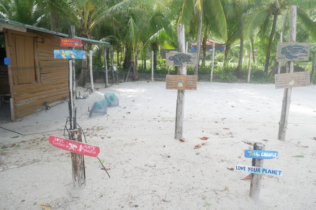 Après ces émotions, le gnome n’a qu’une envie : sauter dans la piscine de l’hôtel où nous passons donc un moment, avant de rejoindre la plage. J’avais lu que vers 16h, l’association ASVO lâche régulièrement des bébés tortues au bout de la plage de Montezuma. Nous tentons donc d’aller voir ce qui s’y passe. Mais s’il y a bien deux nids de tortues dans l’espace protégé délimité par l’association, pas de bébés prêts à rejoindre la mer ce jour.