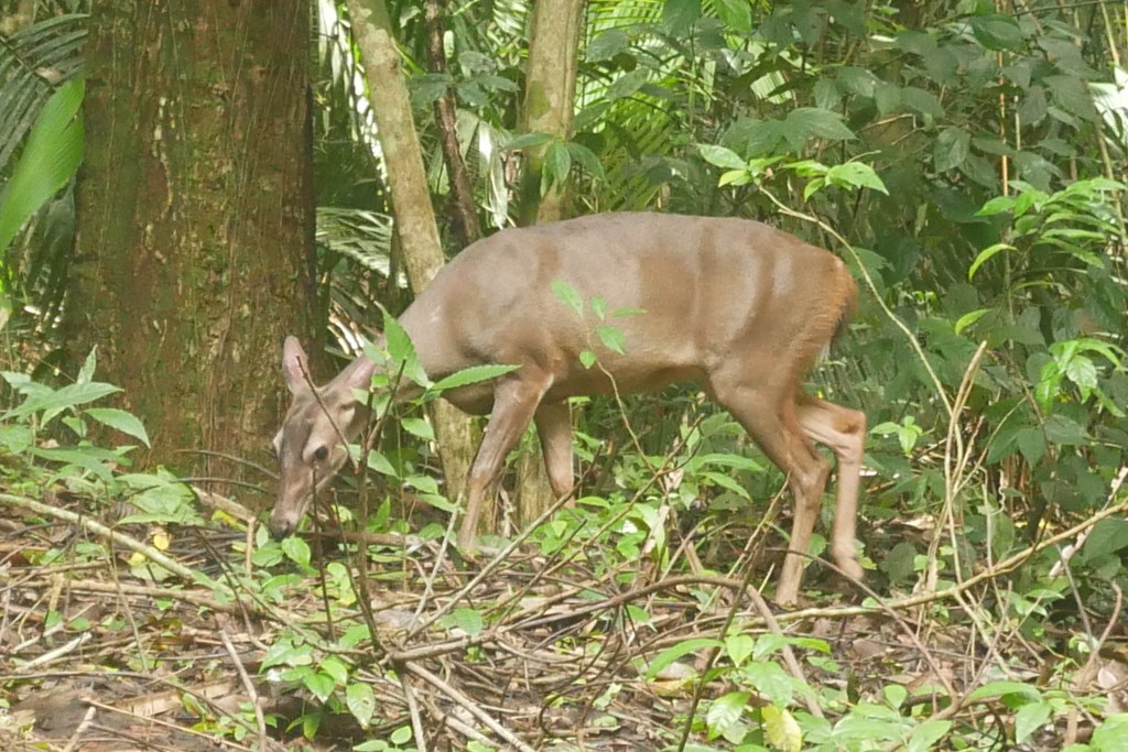 Depuis Montezuma, il nous faut emprunter une piste en terre accidentée pour accéder à Cabuya où se trouve l’entrée de la réserve. Un 4×4 est indispensable. Malgré les difficultés d’accès, notre visite s’annonce bien puisqu’avant même d’avoir atteint le parking, une biche traverse devant nous sur le chemin à l’entrée du parc !