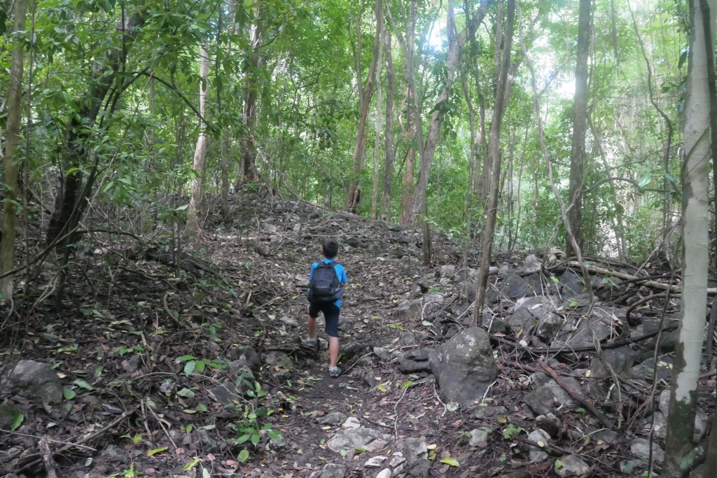 Il faut compter bien 2h de marche pour l’aller et autant pour le retour pour effectuer cette randonnée d’un total de 10km. De bonnes chaussures sont nécessaires et il est impératif de prendre avec soi de grandes quantités d’eau. Nous avons déjà pas mal randonné au Costa Rica, mais ici la chaleur intense et l’humidité représentent une difficulté supplémentaire. Bien vite, le gnome peine, en sueur, et se dit trop fatigué pour aller au bout. Mais malgré tout nous continuons. La traversée de ruisseaux en passant sur les cailloux, en plus de créer une distraction bienvenue, a le mérite de nous permettre de nous rafraîchir un peu.