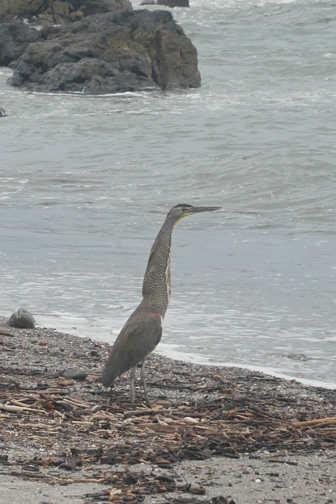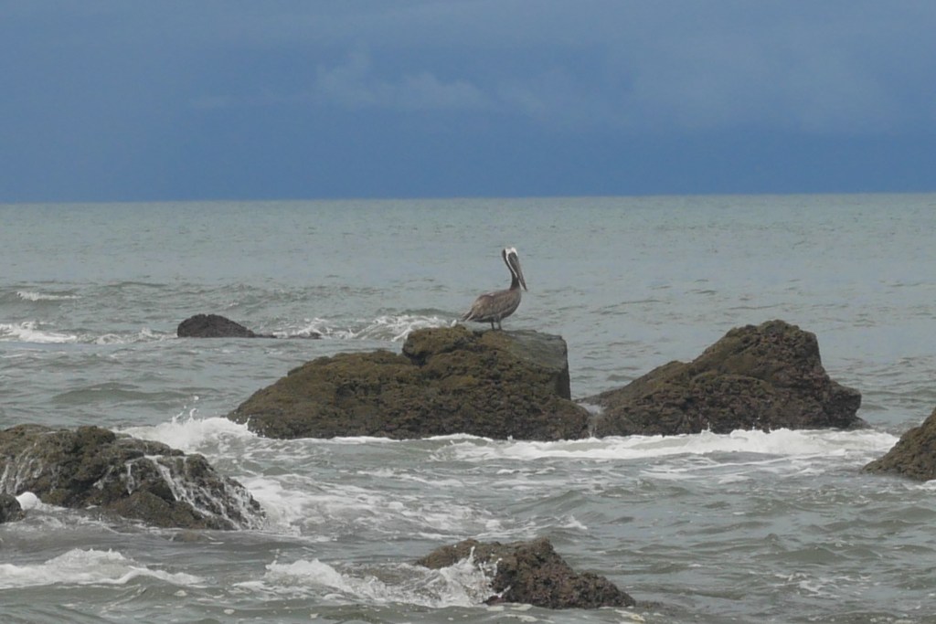 Ce matin nous passons un moment à la plage côté village. Le gnome joue avec le cours d’eau tandis que des pélicans et des vautours se promènent sur les rochers et dans les vagues. Des pêcheurs, les pieds dans l’eau tentent d’attraper des poissons avec juste un fil de pêche enroulé. Je savoure ce paisible instant car c’est la fin de notre séjour à Montezuma.