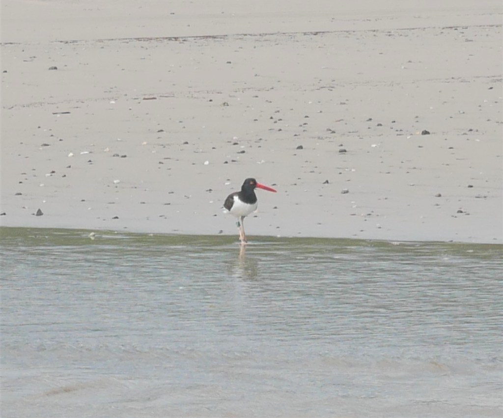 Arpentant la plage de bout en bout, une fois passé une pointe de sable, nous découvrons un pêcheur les pieds dans l’eau, stockant les poissons attrapés dans un petit bassin naturel formé par les rochers. Plus loin, le gnome se précipite sur le récif pour aller se faire éclabousser par le « geyser » : les vagues s’engouffrent dans un interstice au milieu de la roche et ressortent en un puissant jet d’eau.