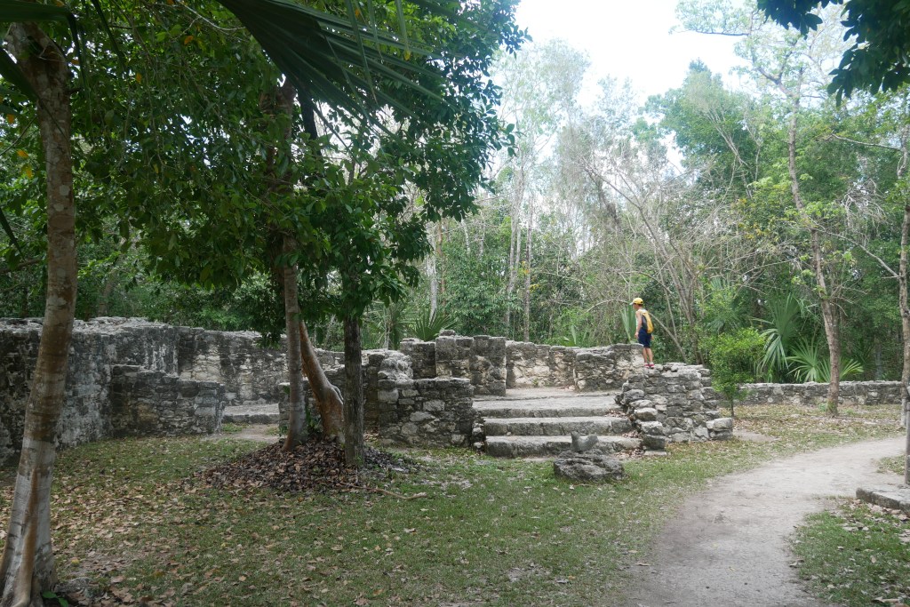 Les édifices semblent moins organisés et en moins bon états que ceux de Tulum et Chichen Itza pour la plupart mais n’en sont pas moins impressionnants. Ici la nature a repris ses droits et la végétation a envahi les constructions jusque sur les terrasses supérieures. Cela donne l’impression au gnome d’être un aventurier découvrant une cité perdue !