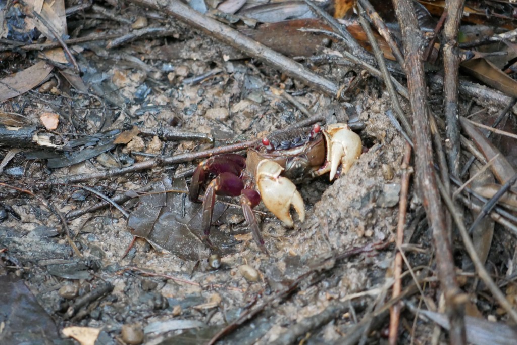 Nouvelle tentative de randonnée avec le Madja Boardwalk : il est bien ouvert ! Ce chemin permet d’effectuer une superbe balade d’environ 45 minutes entre forêt et mangrove. Nous avons même la chance d’apercevoir un crocodile dans la rivière depuis l’un des ponts. Le long du chemin, on découvre également un dindon sauvage et d’autres oiseaux.