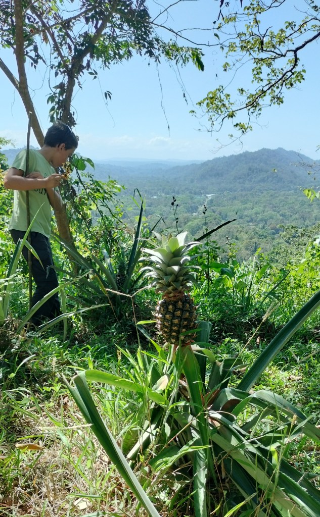 Au retour, nous avons été accueillis chez notre guide, sa femme nous ayant préparé un repas traditionnel Bribri servi dans une feuille de bananier. C’était simple et délicieux, un vrai moment de partage. Pendant que nous mangions, de petits poussins couraient autour de nous, et la petite-fille de notre guide a montré au gnome comment les attraper et les câliner. Ils se sont amusés ensemble, sans se soucier de la barrière de la langue.