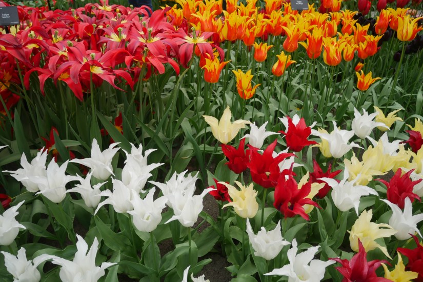 Dès les premiers pas, on en prend plein les yeux. On commence par la grande serre, une sorte de hall d’exposition dédié à la tulipe sous toutes ses formes : des centaines de variétés, de toutes les couleurs et aux noms aussi poétiques qu’étonnants.