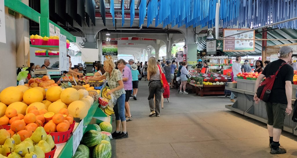 À l’approche de midi, on change complètement d’ambiance en rejoignant le marché Jean-Talon, dans le quartier de la Petite Italie. Et là, c’est un coup de cœur ! On trouve de tout dans ce magnifique et grand marché couvert : fruits et légumes locaux, viandes, poissons, fleurs, mais aussi produits d’érable en tout genre, sauces piquantes, épices… un vrai bonheur pour les yeux (et les papilles !). J’adorerais avoir un tel marché près de chez moi.